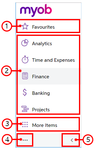 Collapses the main menu panel and adds the Menu button in the top left corner of the screen (instead of the Home button with the MYOB logo). When the main menu is collapsed, the work area expands to cover the area where the main menu had been. This menu command is displayed only when the main menu panel is shown on the left side of the screen. |