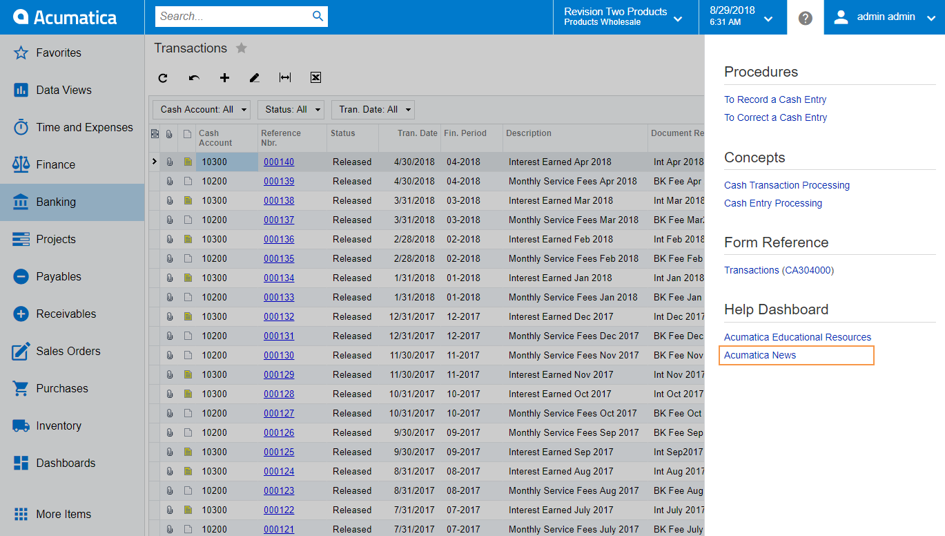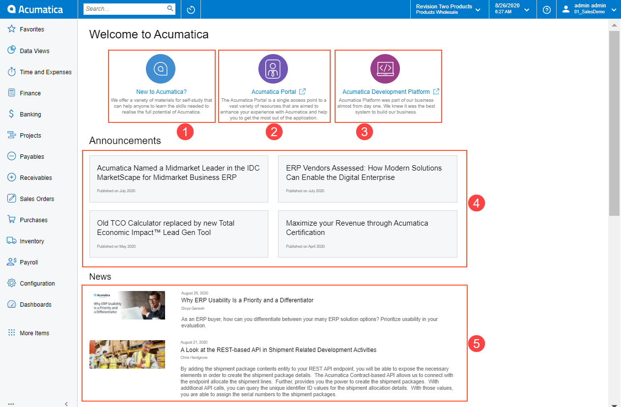 - Visit Acumatica Open University: This tab provides links to the pages with sets of courses available in Acumatica Open University. Each set of courses is organized by the functional area to which the courses belong in MYOB Acumatica. Acumatica Open University is a free educational website available for any user. On this site, you can find such training resources as training guides, files for training, training session recordings, job aids, quick guides, and links to download MYOB Acumatica and MYOB Acumatica Framework.