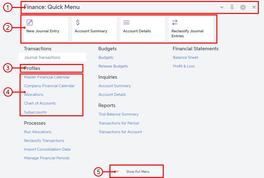 | Show Full Menu | Toggles the workspace to the Full Menu view. This button is displayed in the Quick Menu view of workspace items. |