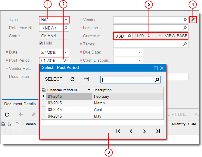 For example, on the Purchase Orders (PO301000) form, to select a purchase order with the number 100, type 100 in the Order Nbr. box.