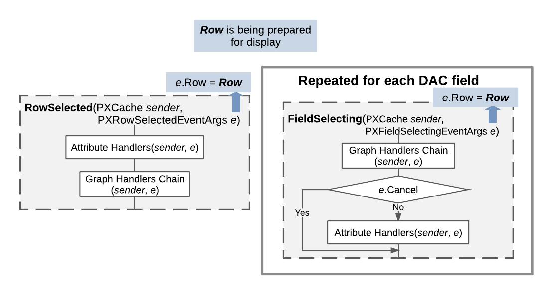 Service API, the RowSelected and FieldSelecting events are