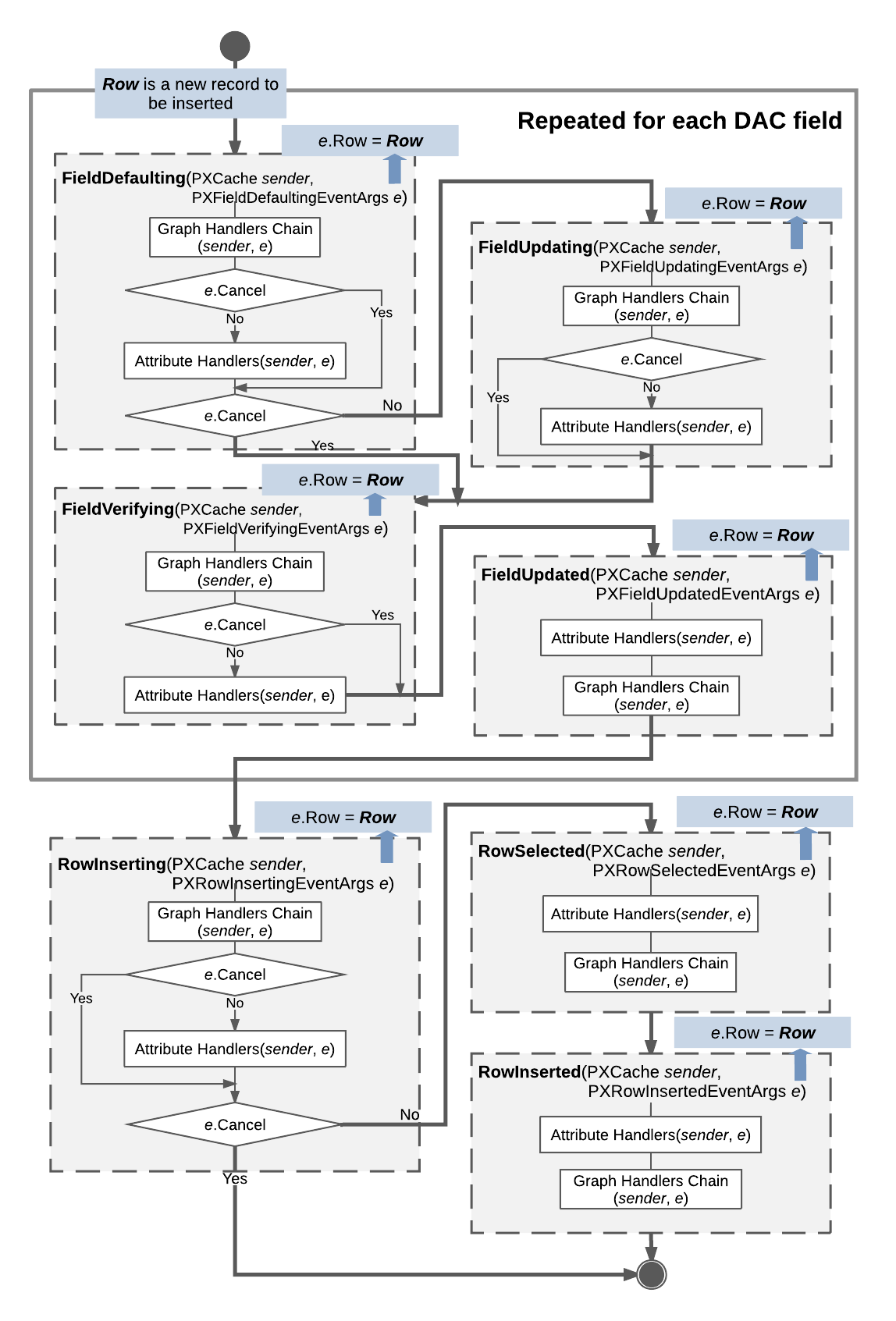 FieldDefaultingFieldUpdatingif thee.Cancelproperty equals trueFieldVerifyingFieldUpdated