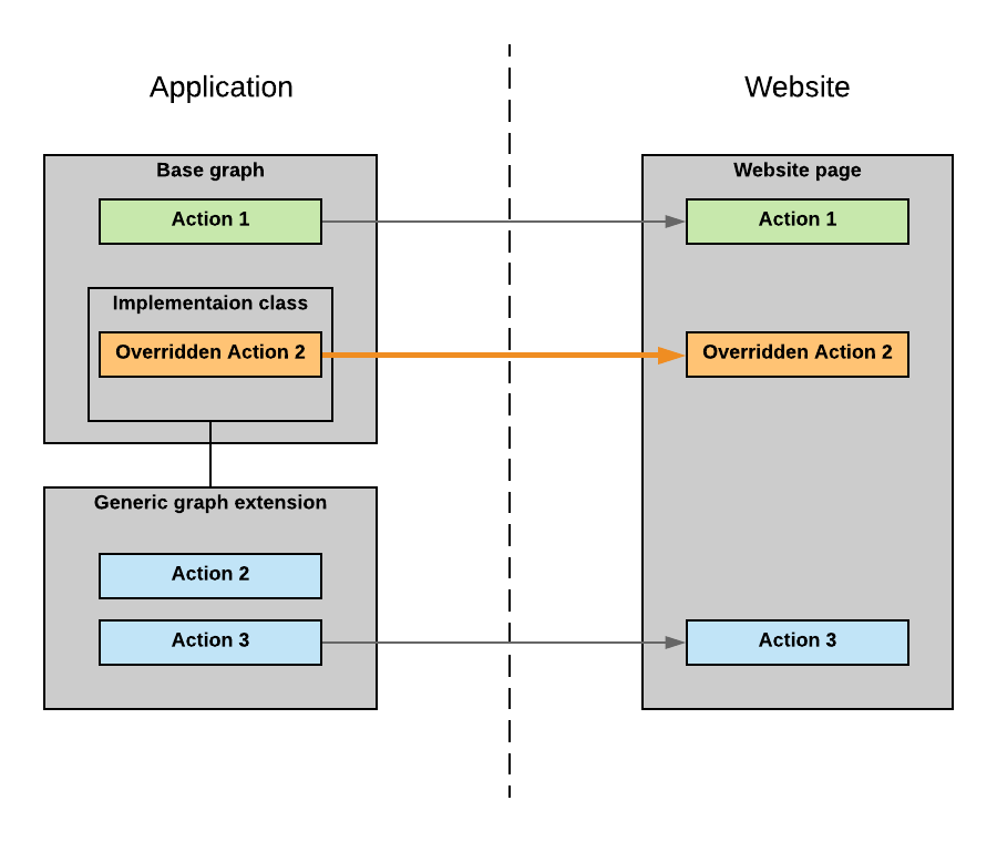 The actions that are defined in the base graph, generic graph extension, and implementation