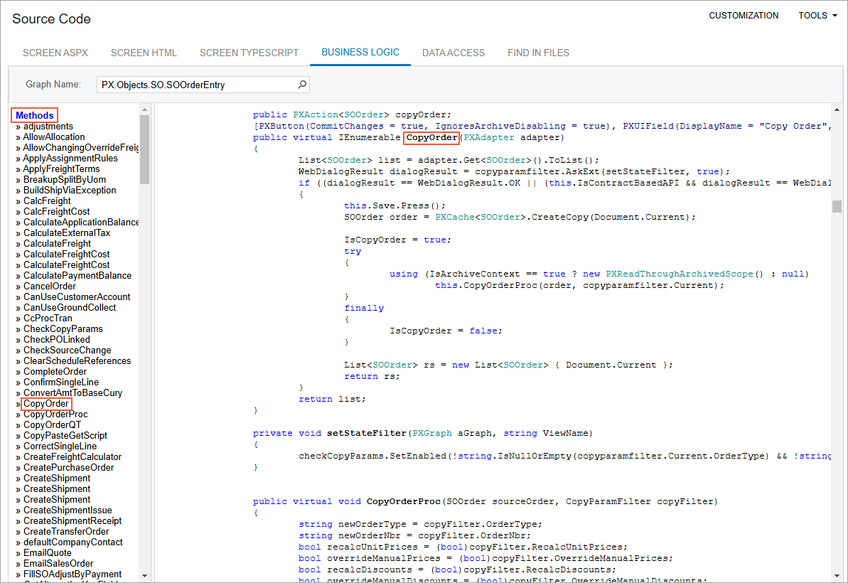dialog box.Note: In an instance of MYOB Acumatica, the repository with the original C# source code of the application is kept in the \App_Data\CodeRepository folder of the website.