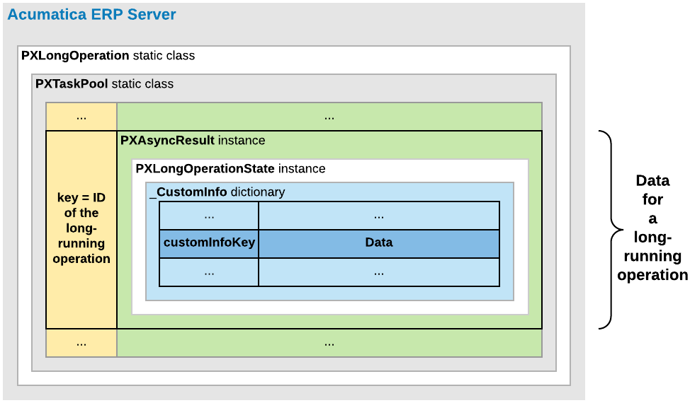 See New way to work with CustomInfo of PXLongOperation at http://asiablog.acumatica.com for more information about the use of the dictionary.