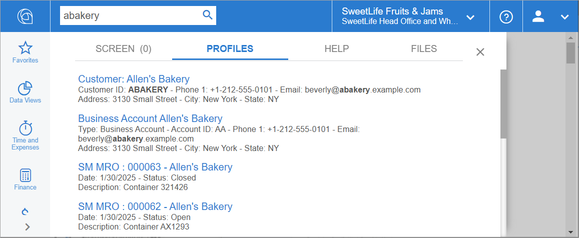 MYOB Acumatica provides universal search capabilities, which are described in detail in Search Capabilities: General Information. With this search, a user can find the records of data access classes (DACs) whose data matches the text entered in the search box.