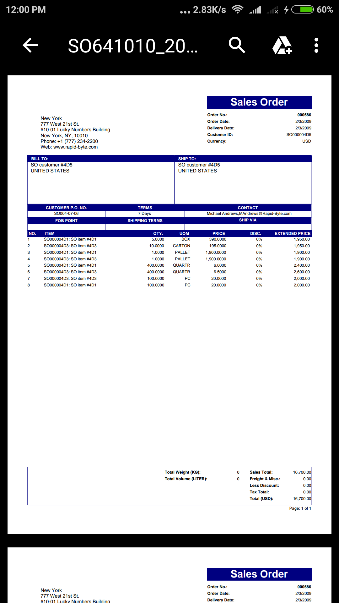 corresponding report in PDF format from the Acumatica ERP server and displays the report for