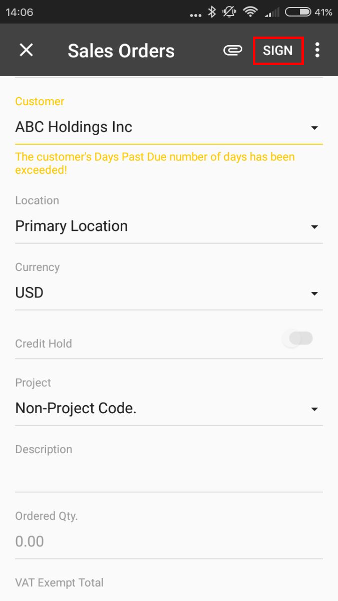 signature adds to the screen in the mobile app (see the following screenshot). To save the
