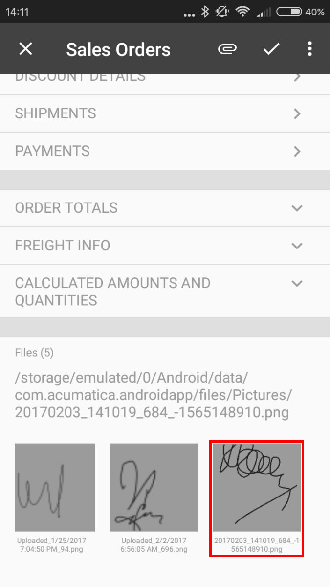 mobile application, the attachment is displayed as an image that is attached to the MYOB Acumatica