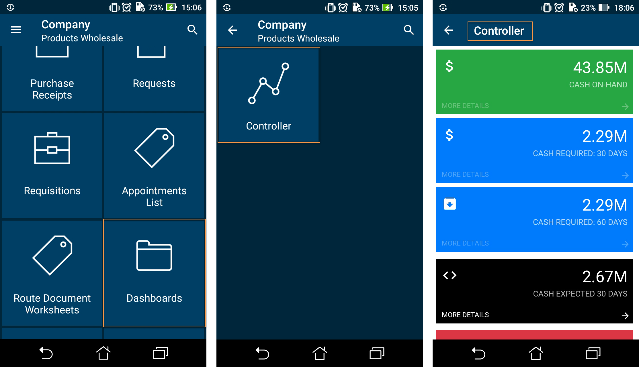 In this example, you will add the Unreconciled transactions widget of the Controller dashboard to the CRM workspace by using the Mobile Workspaces (AU220012) and Mobile Workspace (AU220013) forms.