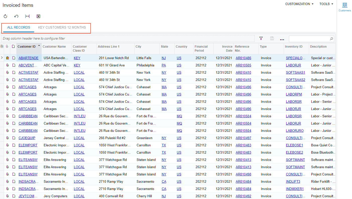 add folder "Invoiced_Items" { type = HubFolder displayName = "Invoiced Items" icon = "system://Pen" add item "GI000008" { displayName = "Invoiced Items" } } - Add the screens to the CRM workspace, as described in To Configure Workspaces in the MYOB Acumatica Instance.