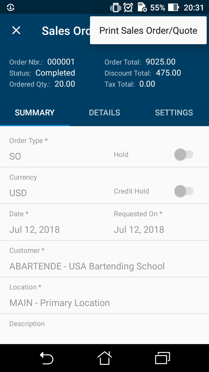 MYOB Acumatica Mobile Framework supports the MYOB Acumatica actions that generate reports. To enable such an action in the mobile app, you should map the action to the form on which the action is invoked. For example, you could map the action to print a document to the entry form on which the document is created. In the mobile site map, the containerAction, recordAction, or selectionAction object has to contain the Redirect attribute set to True.