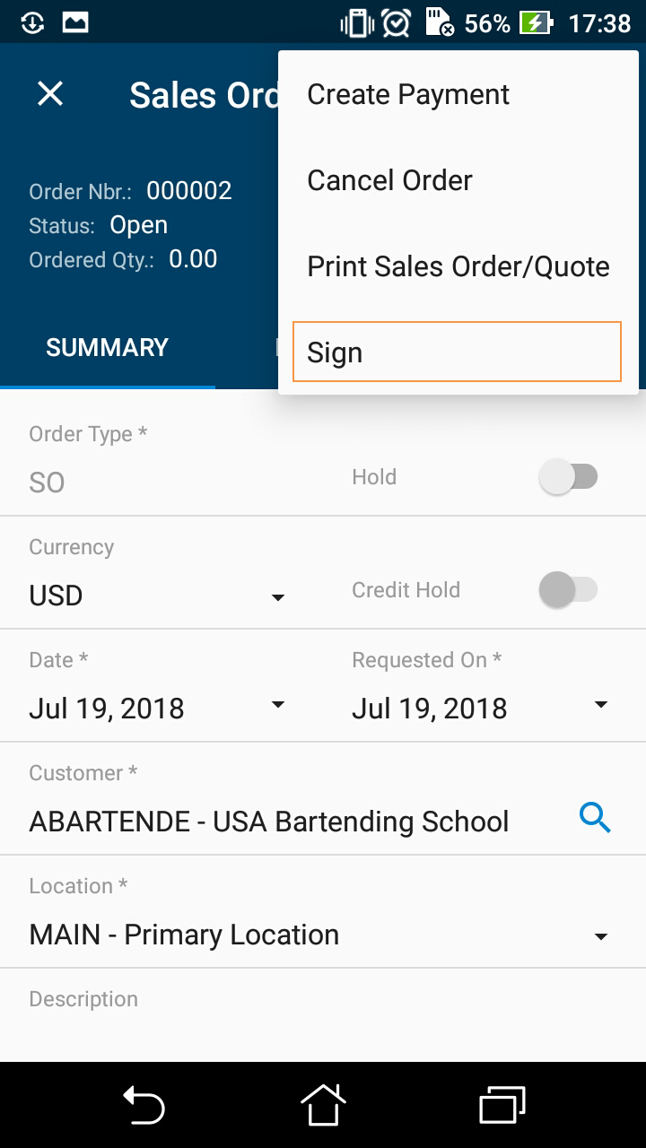 The mobile app provides the additional functionality for user to create a signature and attach the signature image file to an MYOB Acumatica form that supports file attachments.