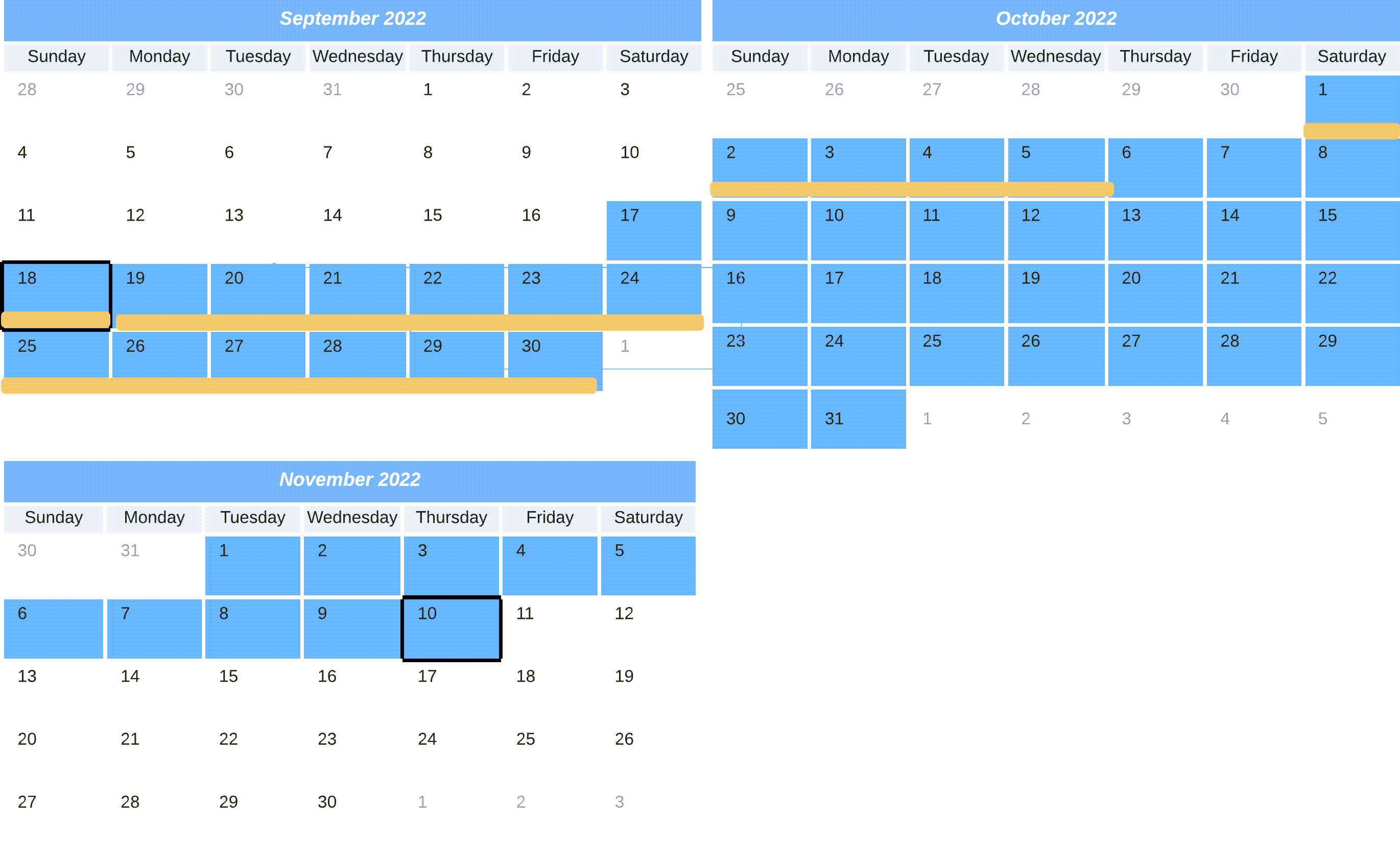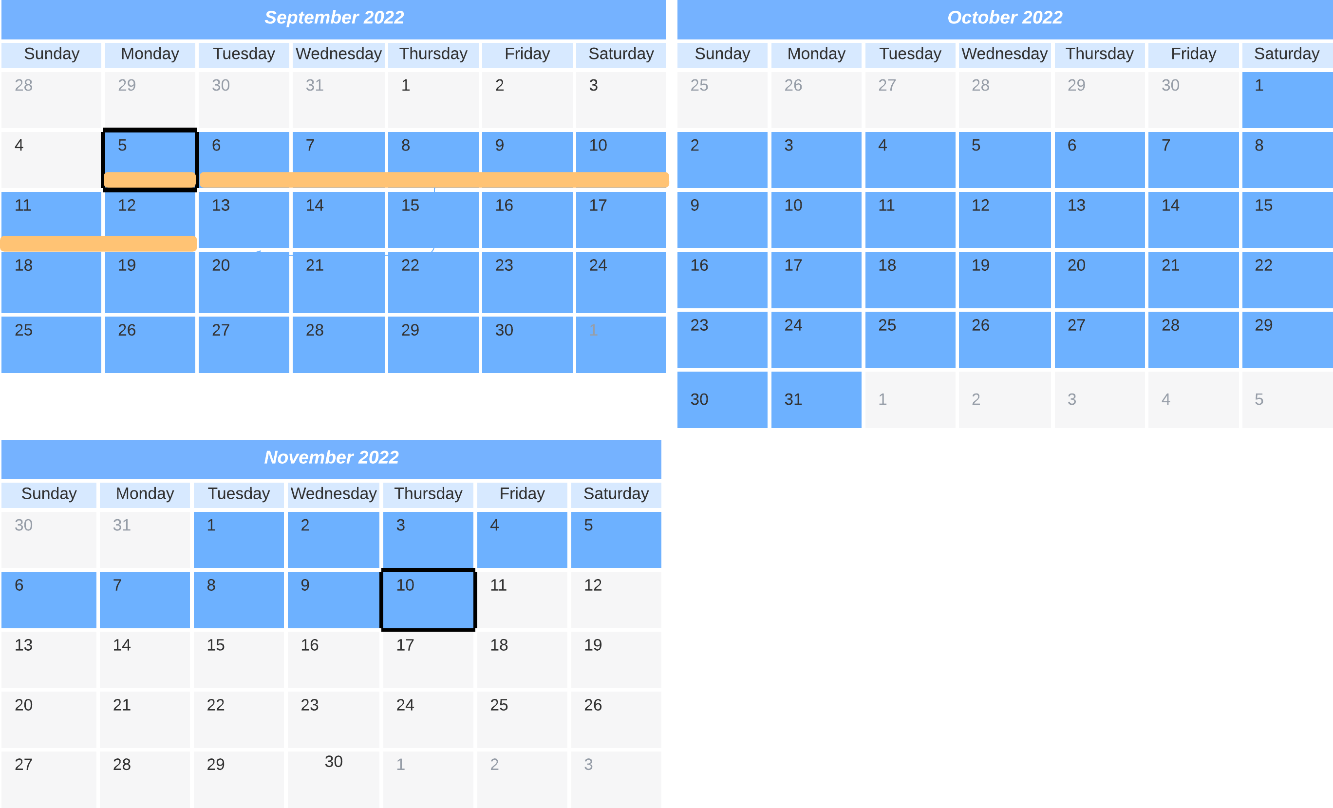 Credit period: 9/5/2022–11/10/2022 Cash discount period: 9/5/2022–9/12/2022 ![]() |