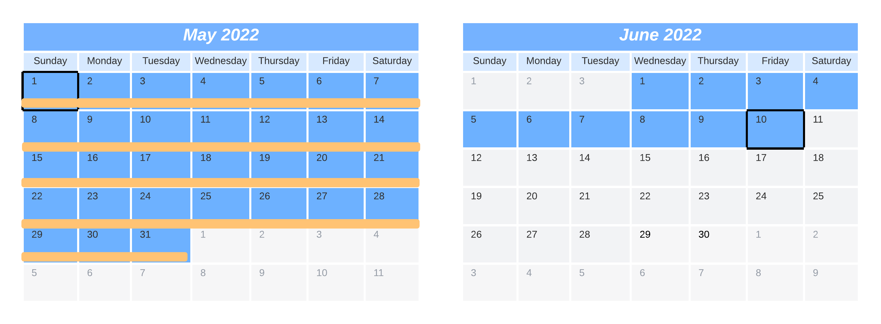 Credit period: 5/1/2022–6/10/2022 Cash discount period: 5/1/2022–5/31/2022 ![]() |