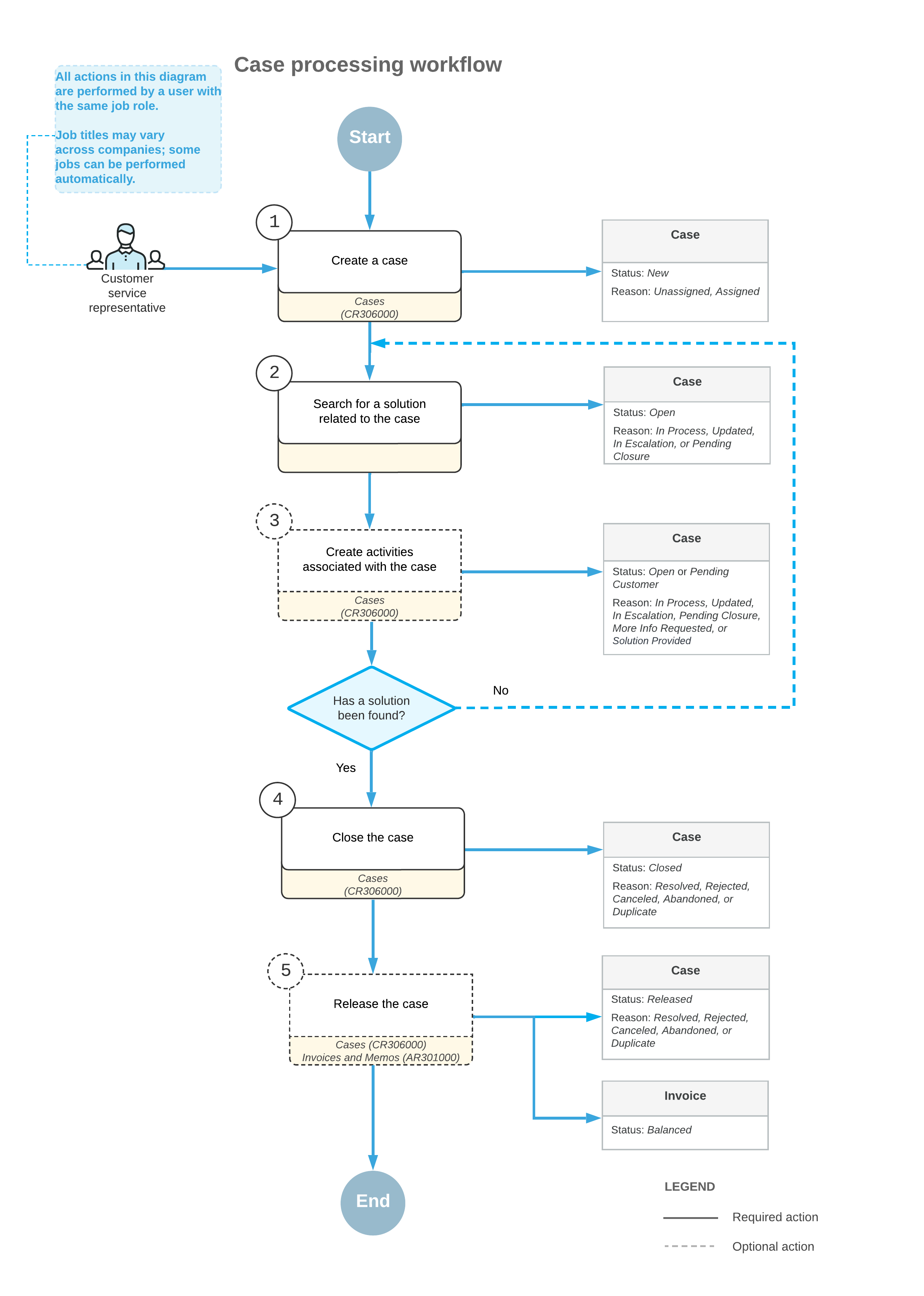 The following diagram illustrates the processing of a case in MYOB Acumatica.