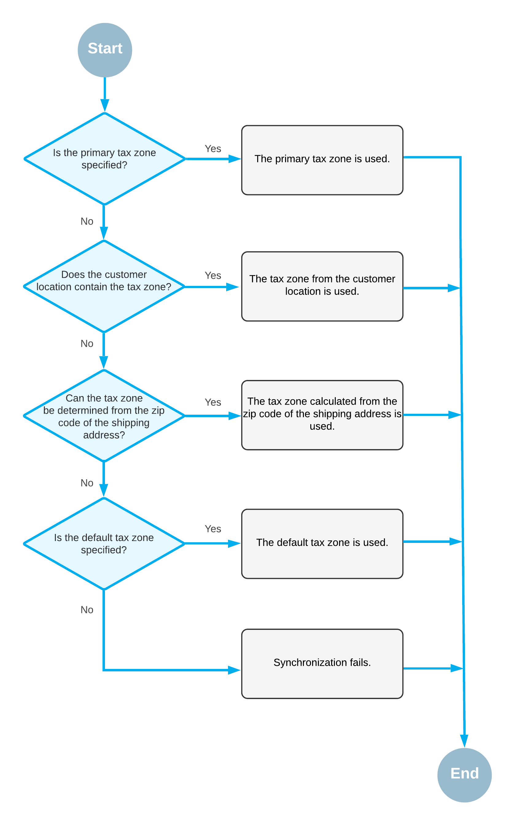 - The system tries to determine the tax zone based on the zip code of the shipping address.