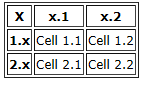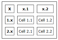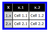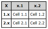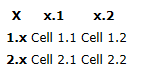the row headings (1.x and 2.x) on separate lines.