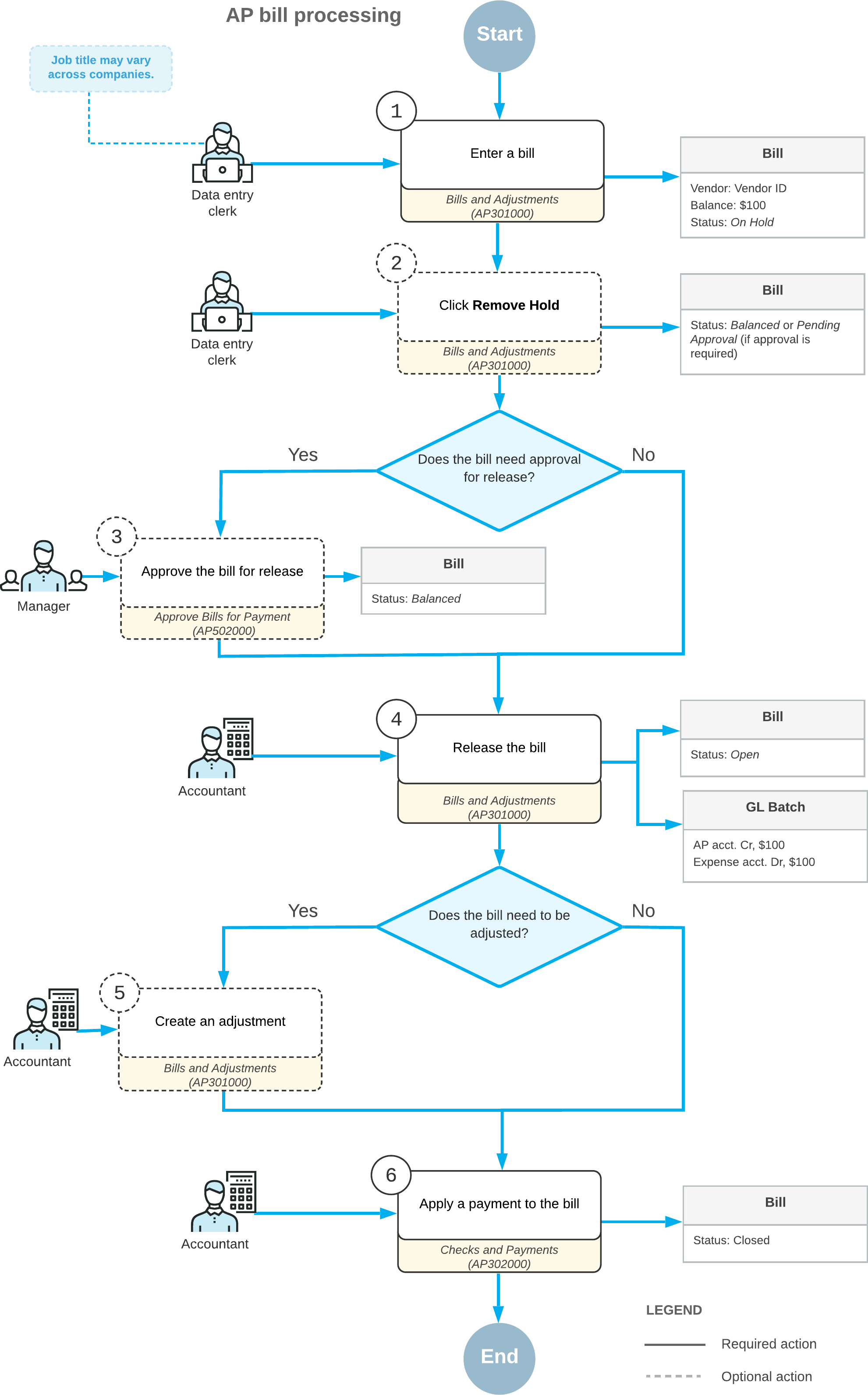 The following diagram illustrates the bill processing workflow.