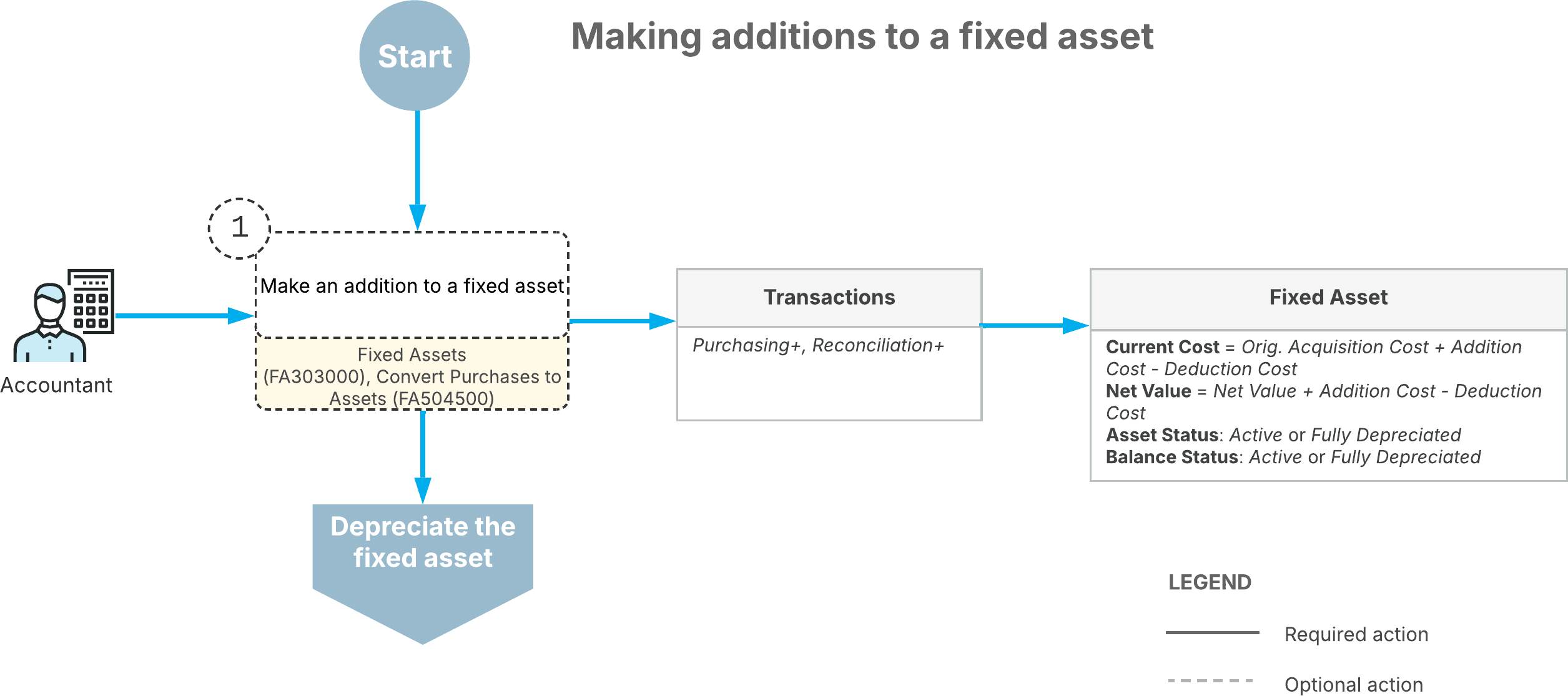The following diagram shows the process of making additions to fixed assets.