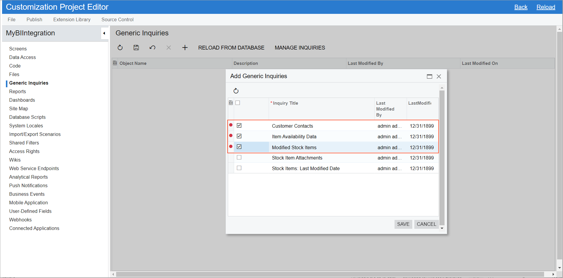 Generic Inquiries in a Customization Project: To Include Generic Inquiries in a Customization Project
