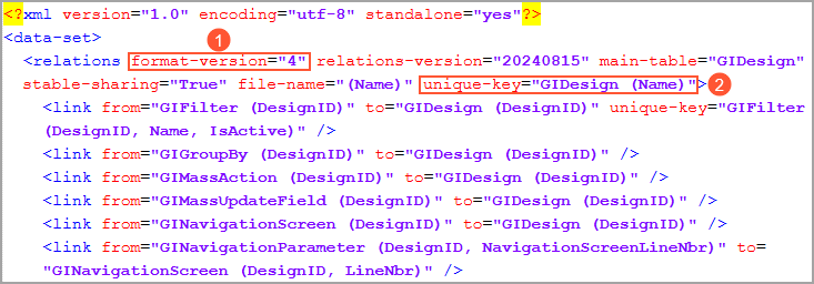 the following screenshot) of the XML schema provided with MYOB Acumatica supports the unique-key attribute (Item 2). The system uses this