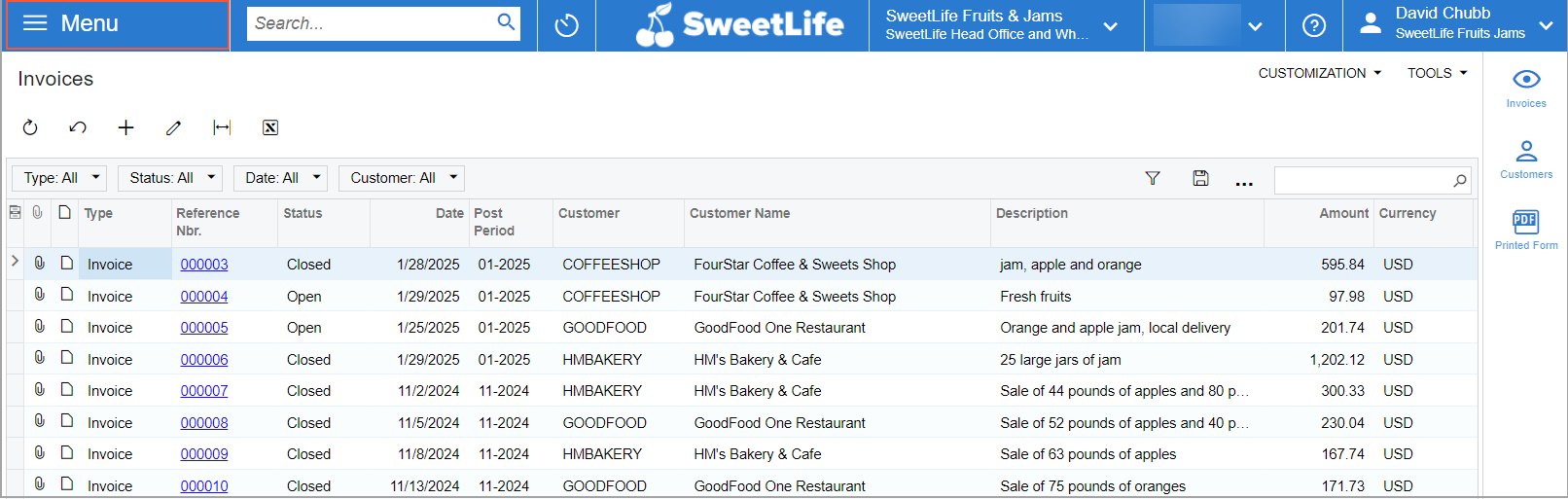 Suppose that you are David Chubb, a new sales manager of the SweetLife Fruits & Jams company. You have signed in to your MYOB Acumatica instance for the first time and you would like to become familiar with the UI before you start setting up your working environment to meet your preferences.