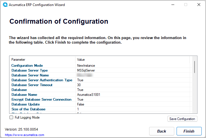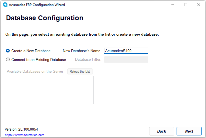 - On the Start menu, click Acumatica ERP Configuration to open the MYOB Acumatica ERP Configuration Wizard.