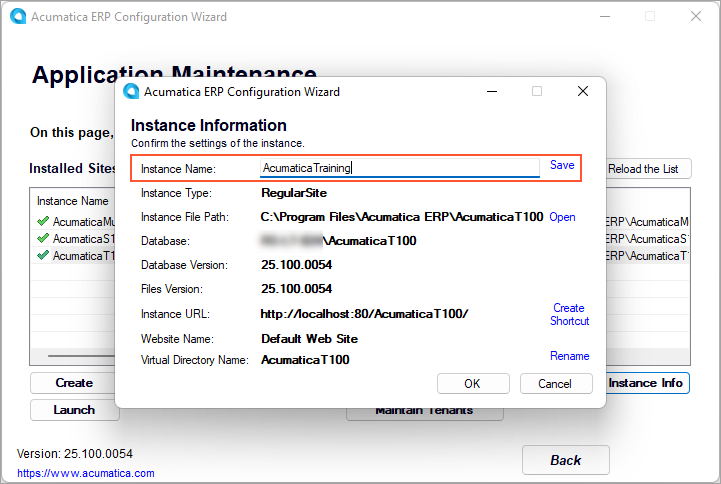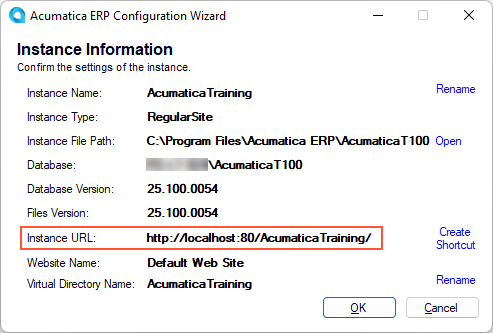 - Change the virtual directory name to AcumaticaTraining.