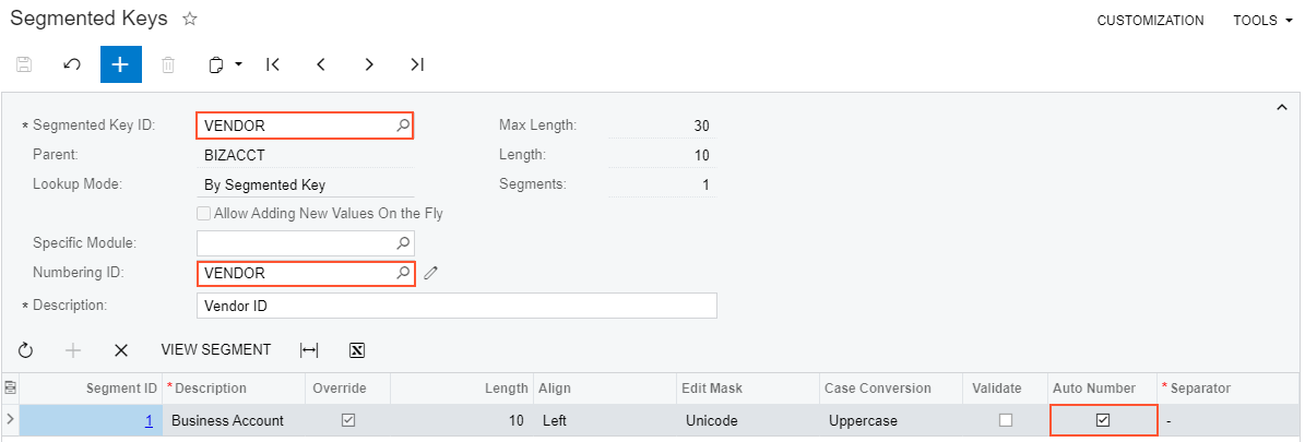- Make sure that the settings on the Segmented Keys (CS202000) form for