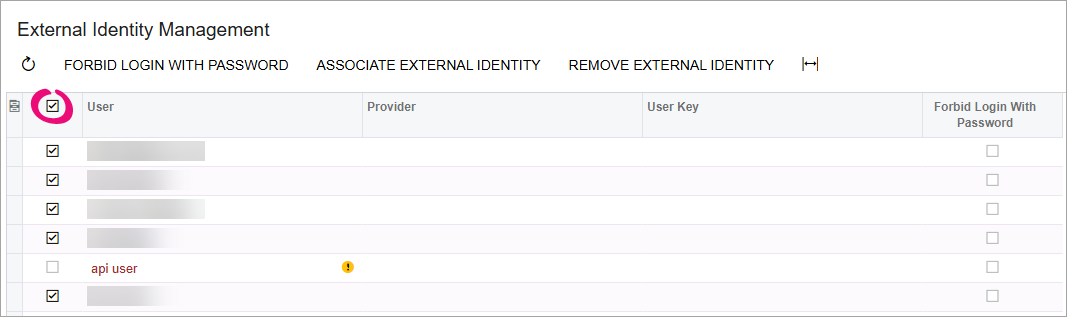- In the checkbox column, select all users by selecting the checkbox in the