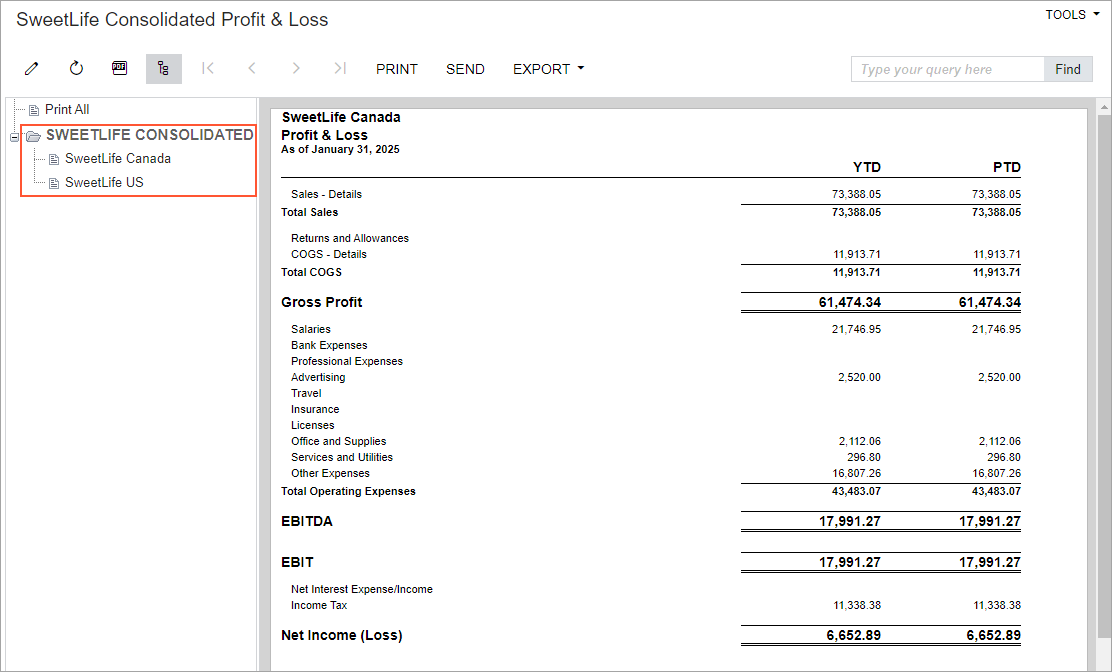 Step 7: Running the SweetLife Consolidated Profit & Loss Report