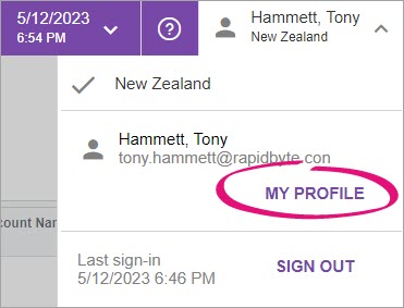 In the top right of MYOB Acumatica, click your user name and choose My Profile.
