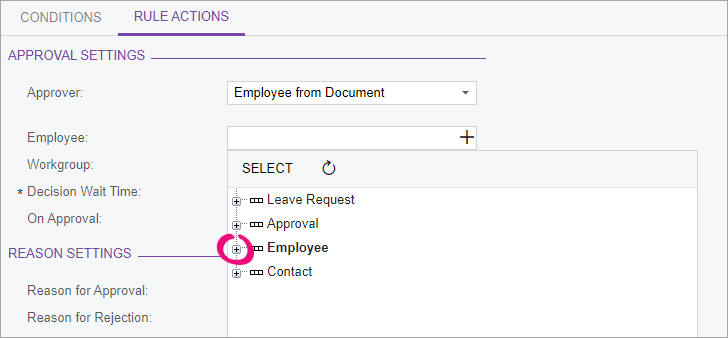 In the Approver field, select Employee from Document workgroup.