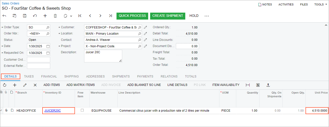 - Open the Sales Orders (SO301000) form.