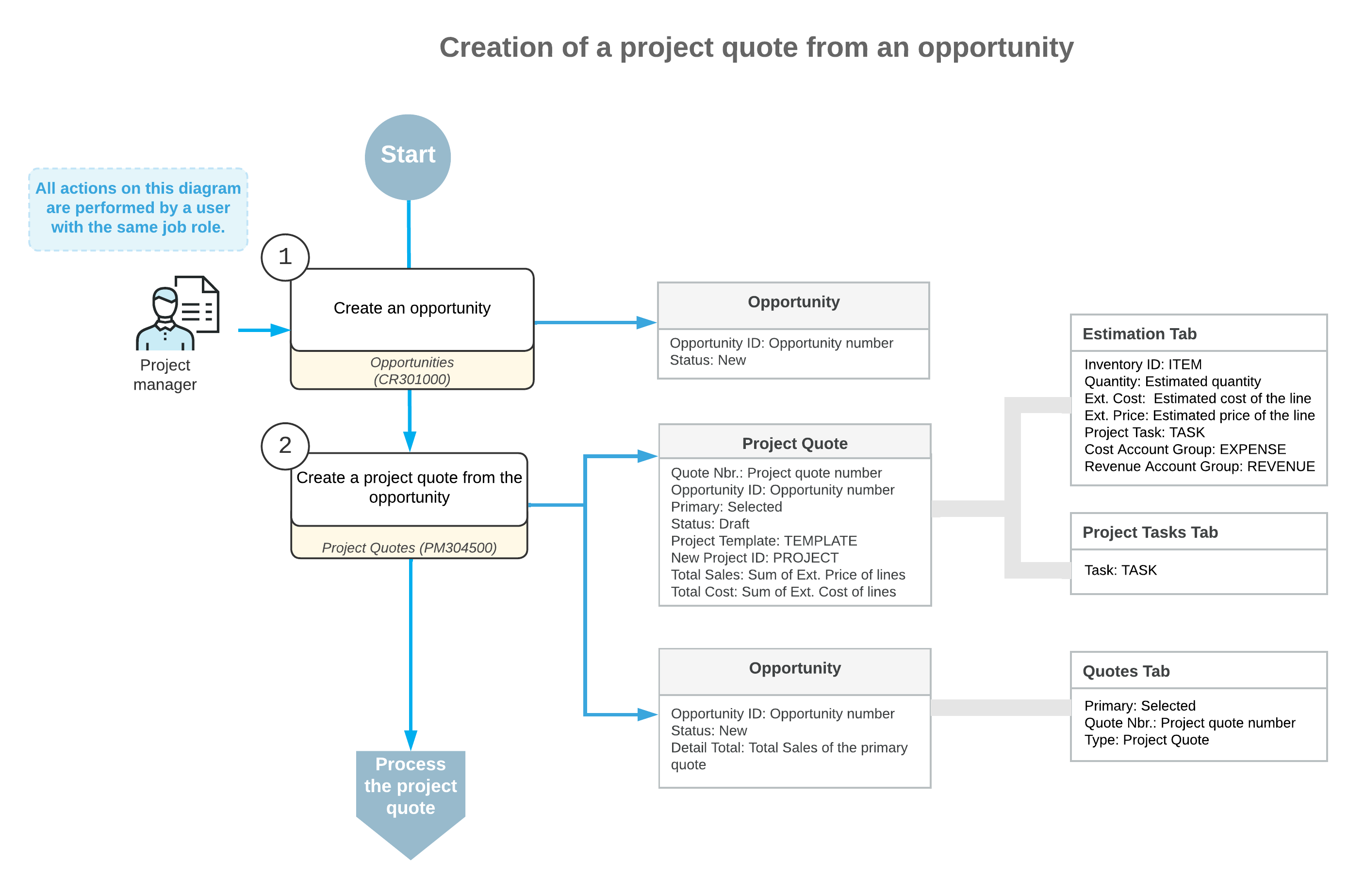 The following diagram illustrates the creation of a project quote from an opportunity.
