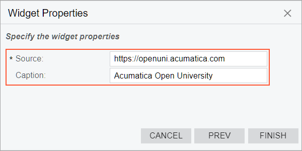 You use an embedded page widget to display important information from external systems in MYOB Acumatica to provide dashboard users with consolidated information on one dashboard. An embedded page may display, for example, a currency rate, a weather forecast, or a document from an external cloud storage.