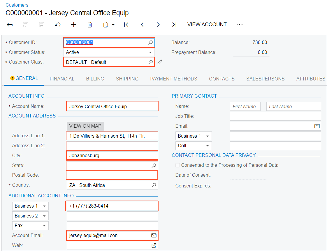 - The AcctCD, AcctName, and CustomerClassID fields of the PX.Objects.AR.Customer DAC