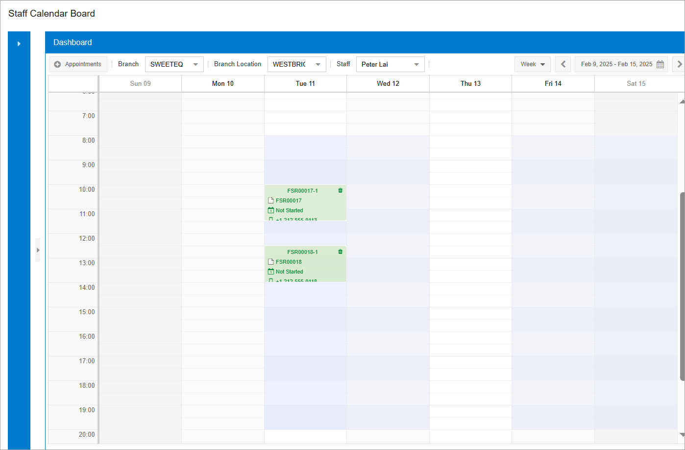 to start at 12:30 PM (as the following screenshot shows). Close the Staff Calendar Board form.