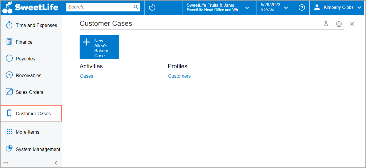 - While you are still viewing the Customer Cases workspace, click the tile.