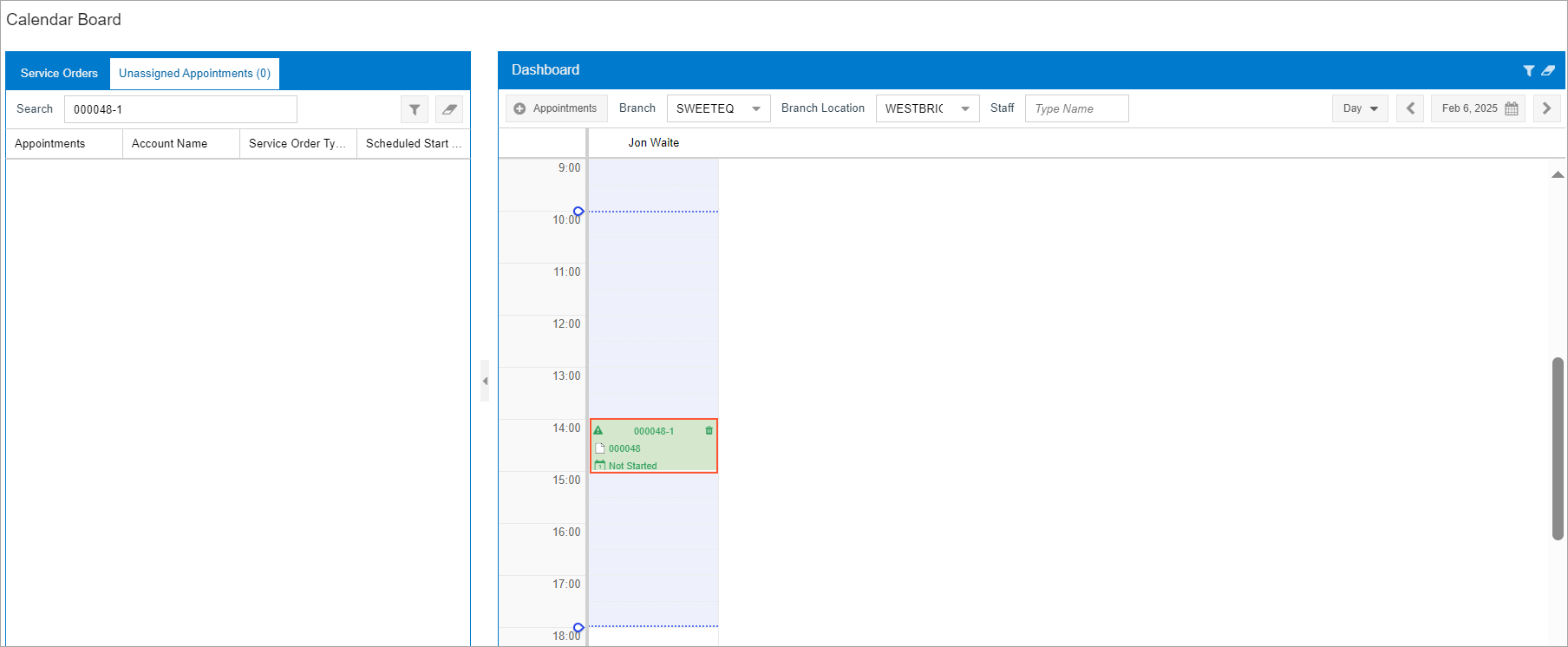 - On the Unassigned Appointments tab, click the appointment