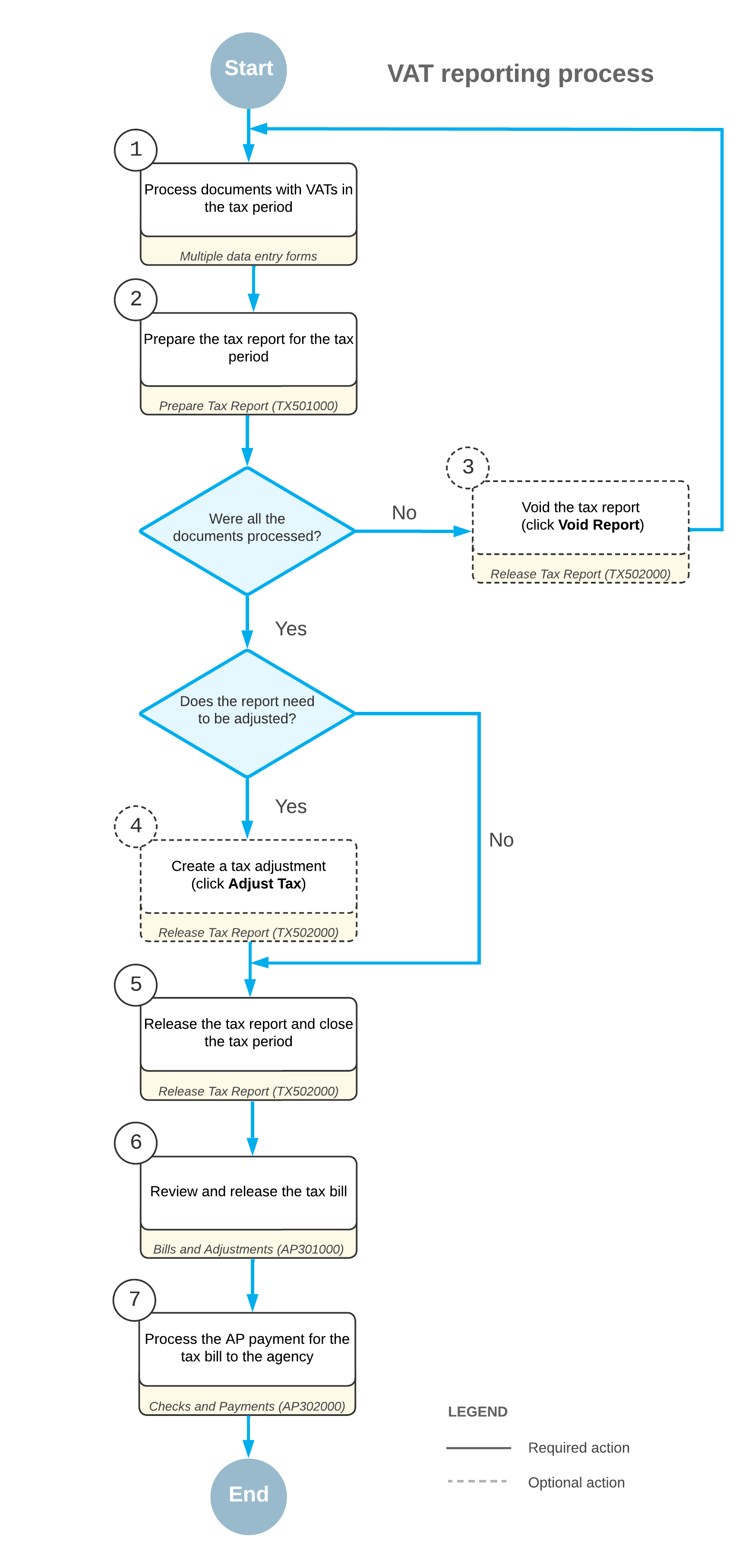The process of reporting value-added taxes in MYOB Acumatica is displayed on the diagram below.
