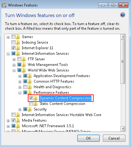 You should enable dynamic content compression, which is disabled by default. The HTTP compression setting on Internet Information Services (IIS) can provide faster transmission times between IIS and the client browser.