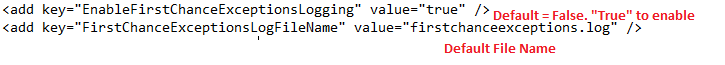 - In the web.config file in the MYOB Acumatica site folder, find the EnableFirstChanceExceptionsLogging