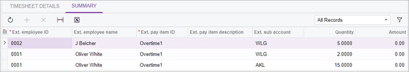 The Summary tab provides an additional level of reporting by grouping the imported data by employee, pay item and subaccount. The Summary tab only reports on the imported external data, and is not indicative of what will be imported into a pay run – the purpose of this view is to help you confirm that all data was correctly imported.